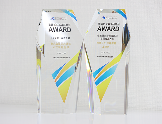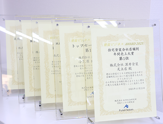 全国100社以上の塗装会社様が集う塗装ビジネス研究会のアワードにて、全国の塗装会社様の中から深井塗装が最優秀企業として表彰されました!