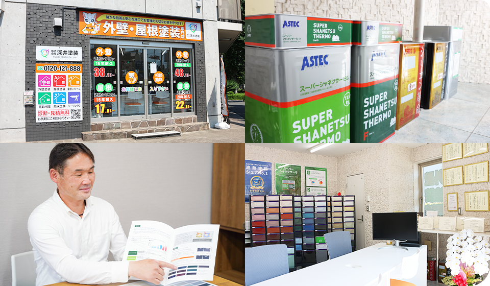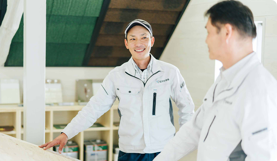 深井塗装には、経験豊富な熟練の自社職人が在籍し、正直な価格と施工で、工務店やハウスメーカーよりも高品質、低価格で外壁塗装・屋根工事をご提供しています。