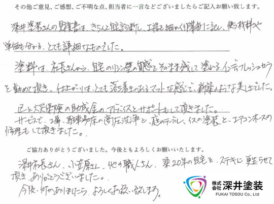 工事内容に自信があるからこそ、最長20年の工事保証書を発行。お客様アンケートと引き換えに保証書をお渡しさせていただきます。