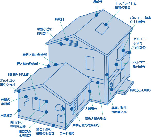雨漏りの原因究明は経験豊富でないと困難な作業になるといわれています。なぜなら、雨漏りは家全体の構造を理解していることが前提で、そのうえでどこが雨漏りしているのかを判別する必要があるためです。