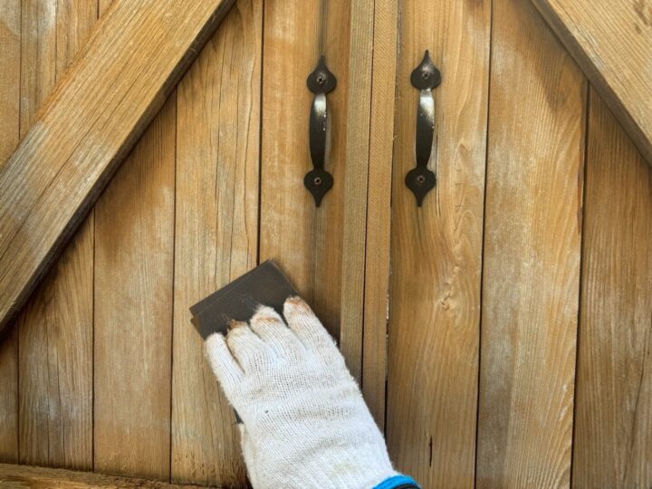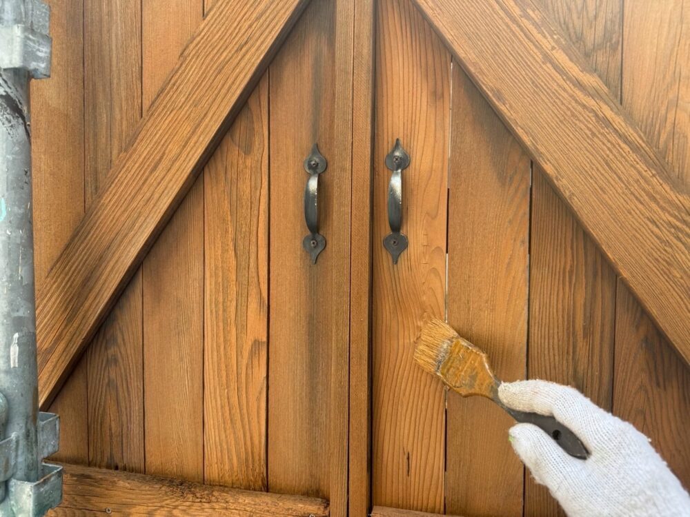 木製玄関扉(浸透型木製扉塗料キシラデコール)塗装