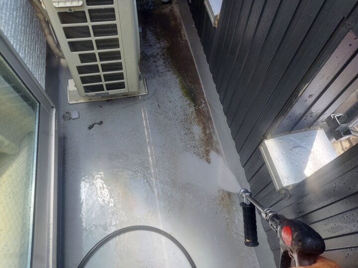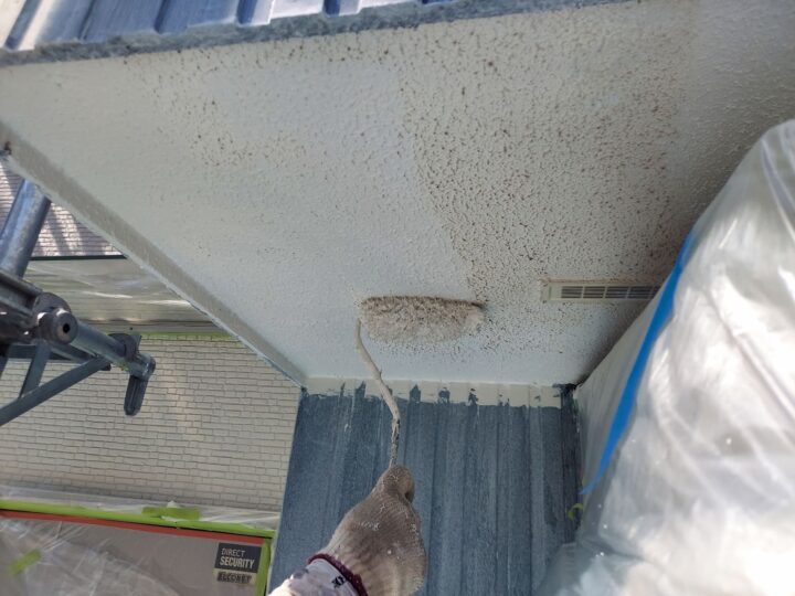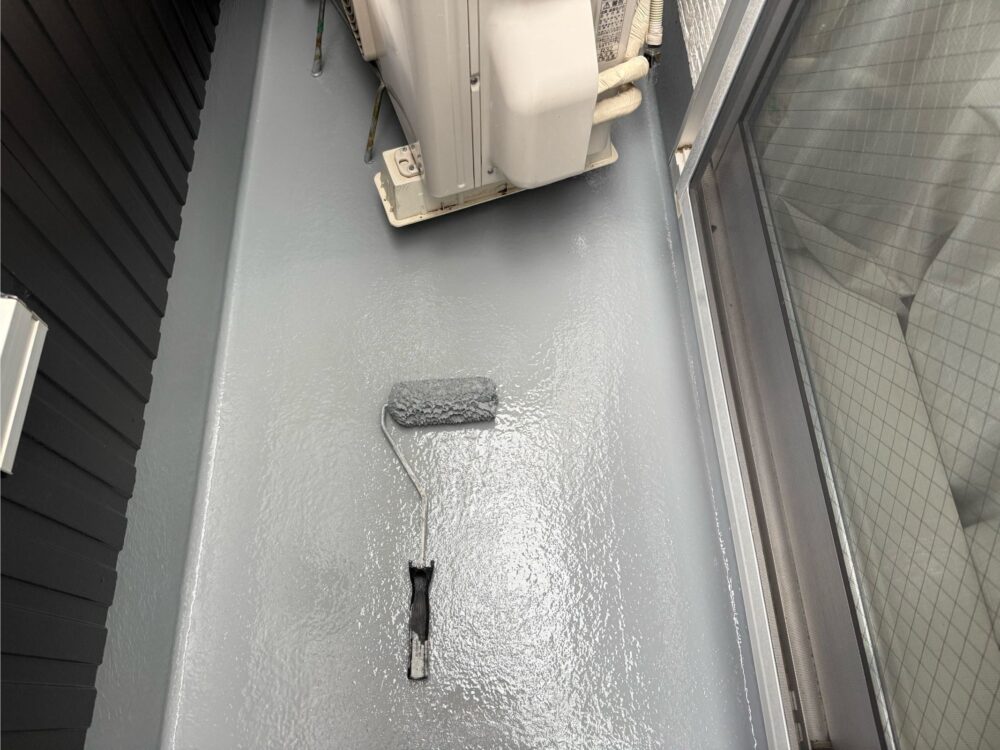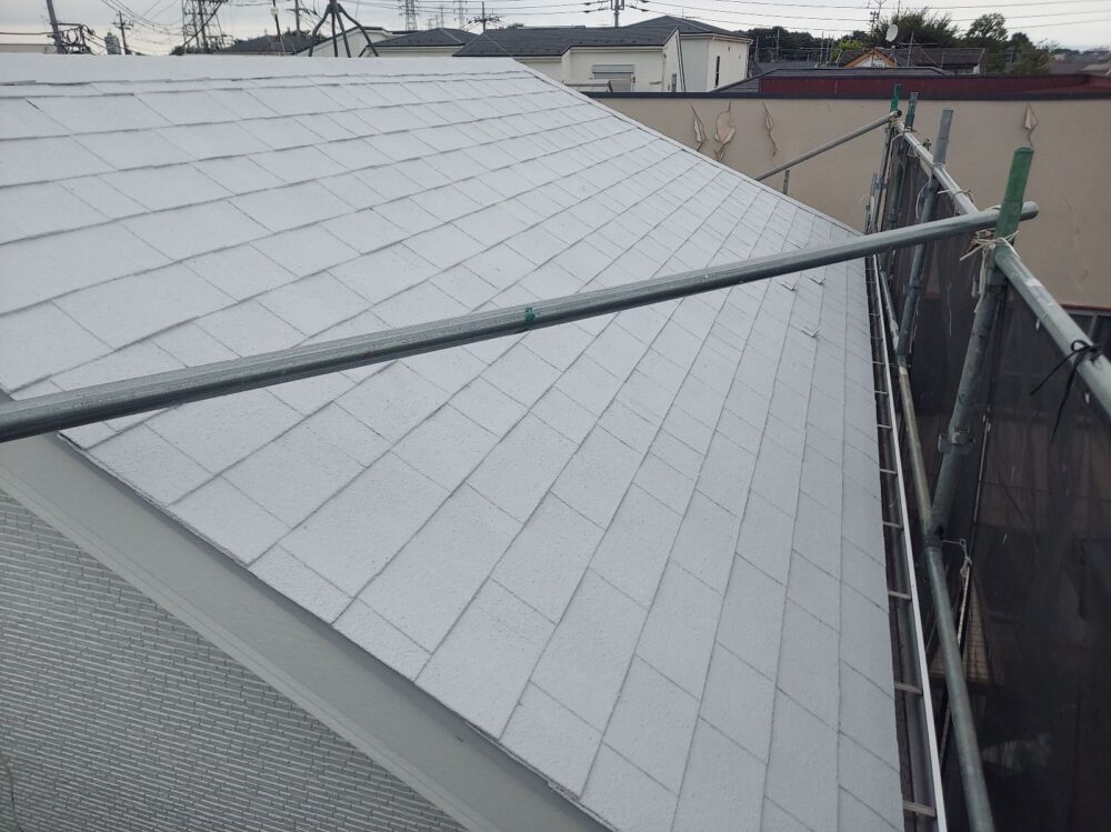 屋根塗装には、遮熱・断熱性能に優れた「キルコ」を使用しました。塗料の中に無数の微細なビーズ状の気泡が含まれており、夏は室内の温度上昇を抑え、冬は断熱効果を発揮してくれるのが特長です。季節を問わず快適な住環境づくりに役立つ塗料ですので、キルコをご検討の際はぜひ深井塗装にお任せください!
